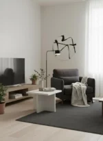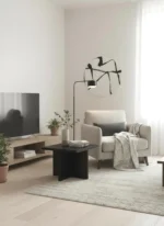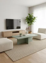 Questo tavolino da caffè rettangolare in stile scandinavo dona una geometria armoniosa al tuo spazio. Realizzato in materiale liscio e opaco. Le sue gambe incrociate riflettono un equilibrio minimalista. Ideale per interni in stile Japandi e scandinavo.