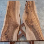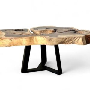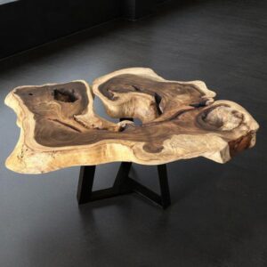 Il tavolo da salotto ”Gloria” è realizzato con l’utilizzo degli assi del noce europeo dai bordi ondulati naturali. Sono state utilizzate due tavole irregolari ma al quanto simmetriche per ottenere un design esclusivo, ispirato all’ eleganza e rusticità nel tempo stesso. La finitura scelta per il piano è un olio a base di cera naturale che riesce a tirar fuori tutta le sfumature naturali del noce. La struttura delle gambe è realizzata in ferro con profilo tubolare a forma di zig zag e verniciato in polvere al forno di un colore particolare cioccolato al latte con l’effetto opaco.