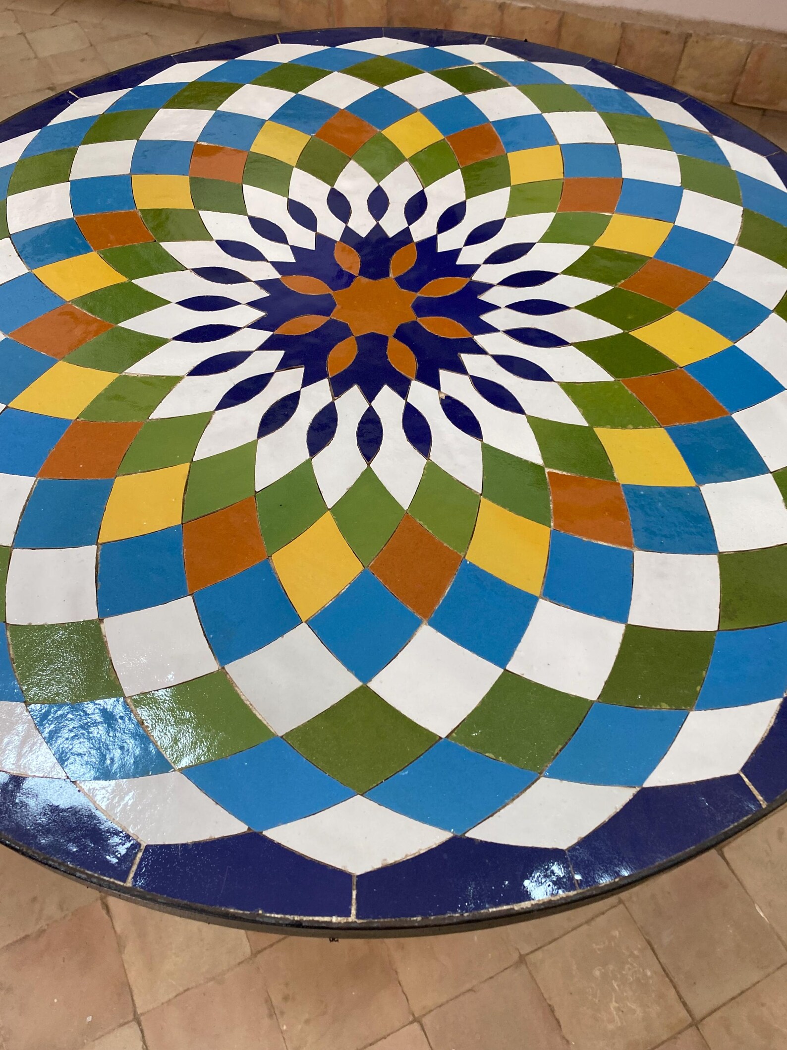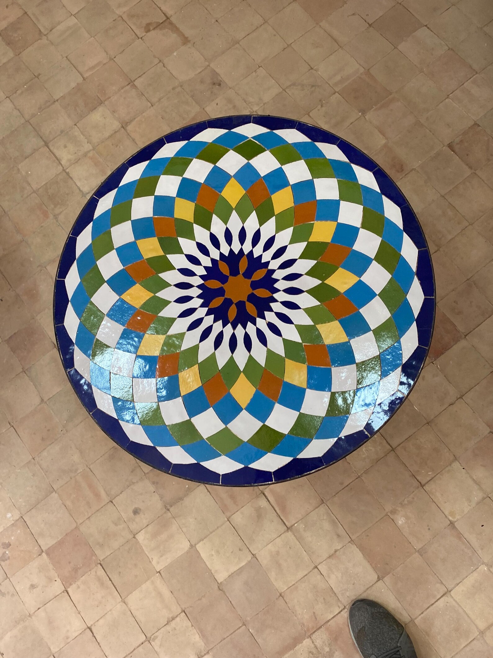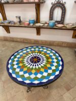 Valorizza il tuo spazio abitativo con il nostro esclusivo tavolo in piastrelle marocchine realizzato a mano. Ispirato agli intricati disegni dell’arte tradizionale marocchina e andalusa, ogni tavolo in mosaico presenta vivaci piastrelle Zellige colorate meticolosamente disposte per creare un accattivante elemento d’arredo. Ideale per aggiungere un tocco di colore e texture a qualsiasi stanza, il nostro tavolo in stile moresco funge sia da splendida opera d’arte che da superficie funzionale per esporre oggetti decorativi o gustare i vostri pasti e bevande preferiti. Realizzato con precisione e cura, questo tavolo in piastrelle infonde nella vostra casa un tocco di fascino mediterraneo.