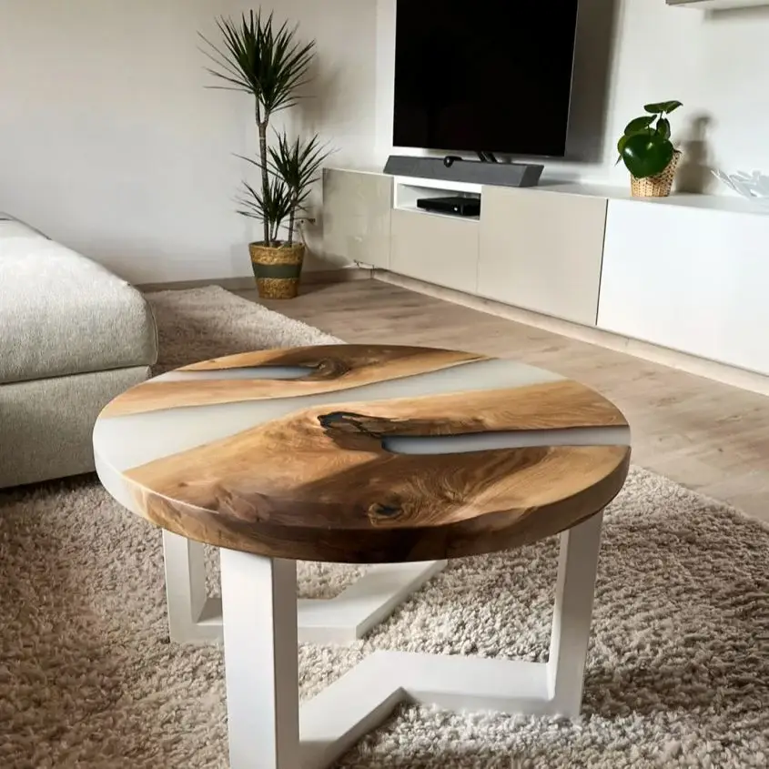 TAVOLO NAXOS DA SALOTTO IN RADICA DEL NOCE CHIARO E RESINA BIANCA SATINATA